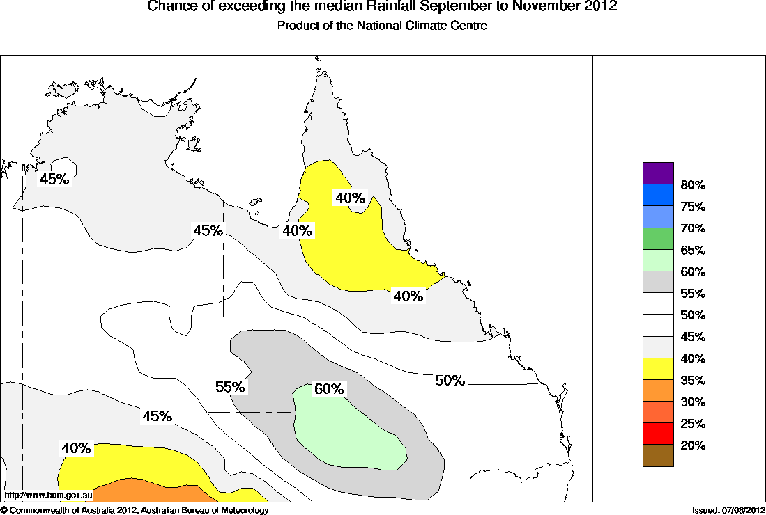 The north Australian outlook for September to November 2012 shows the following: