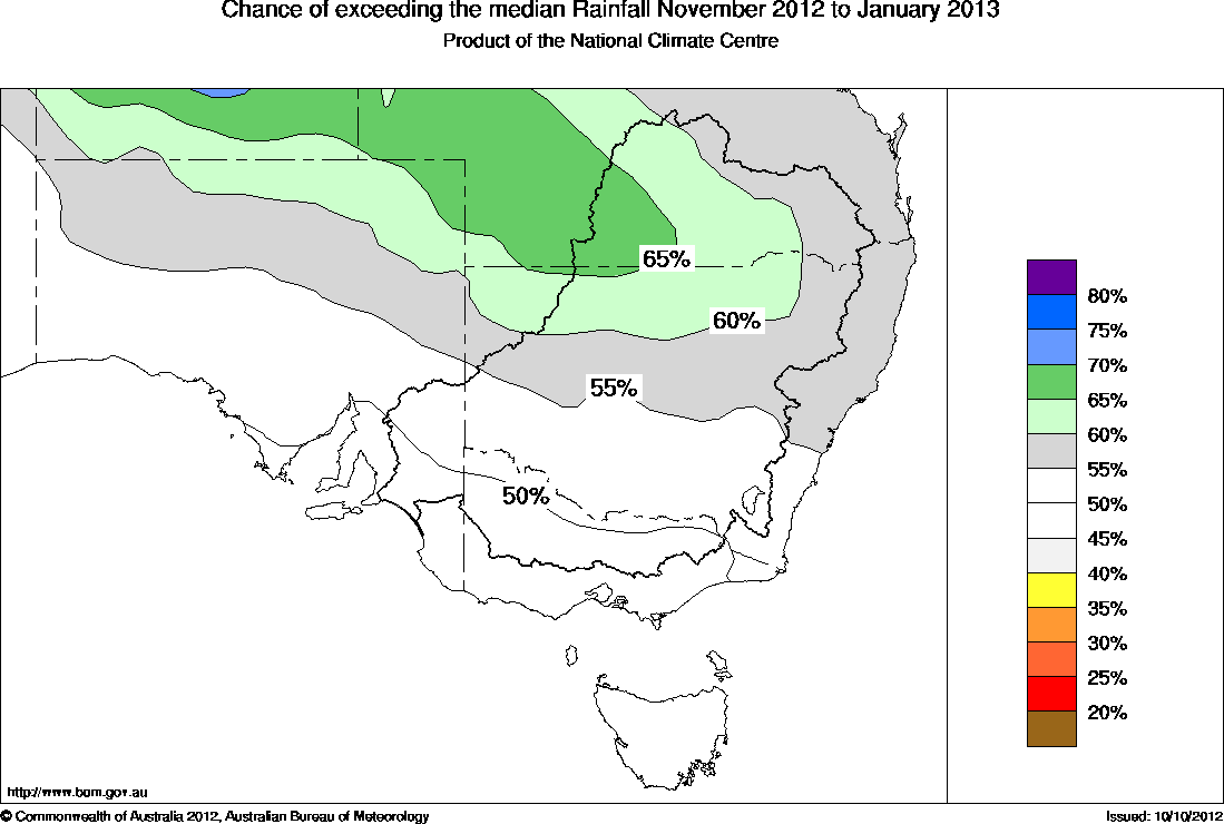 Southeastern Aust Seasonal Rainfall Outlook: probabilities for November 2012 to January 2013, issued 24th October 2012