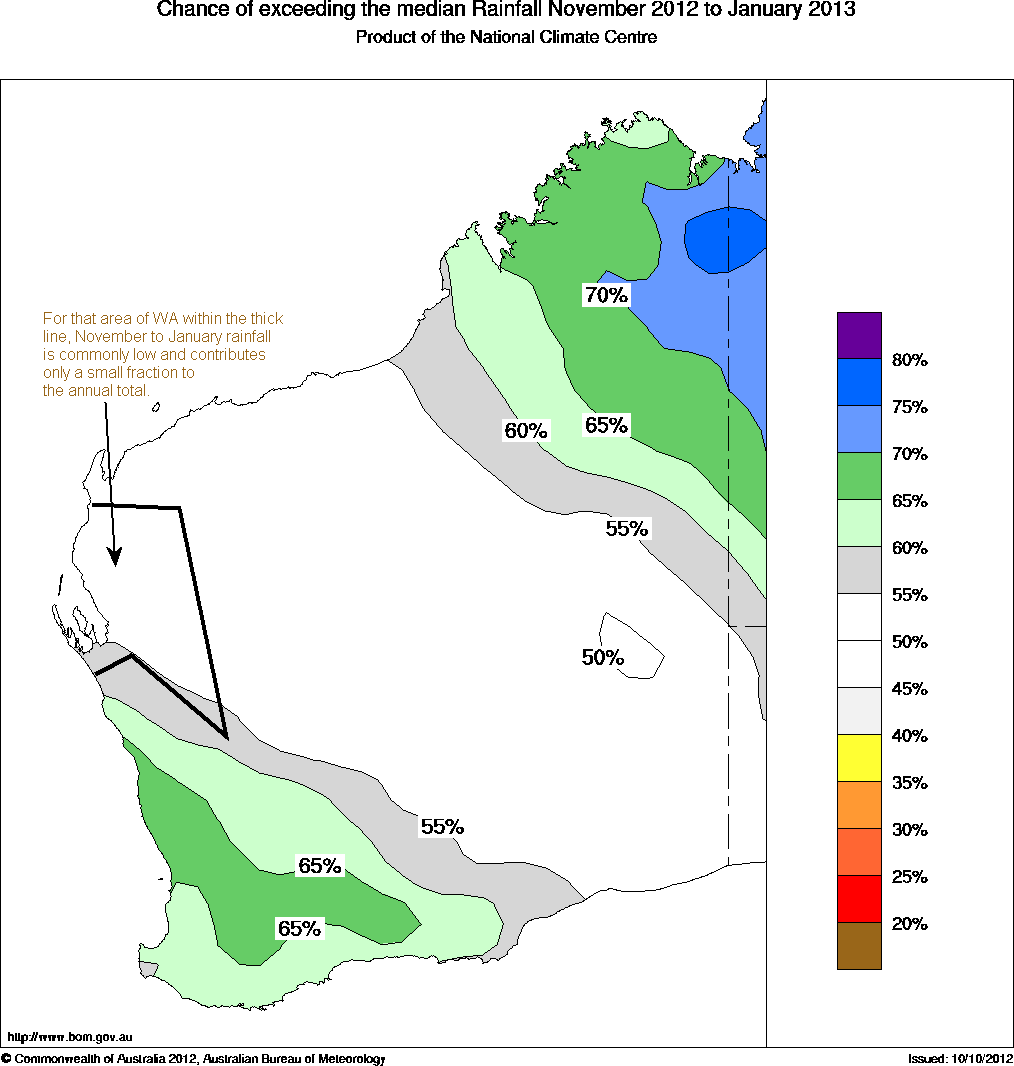 WA Seasonal Rainfall Outlook: probabilities for November 2012 to January 2013, issued 24th October 2012