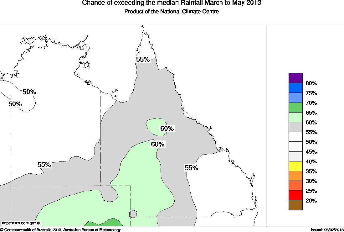 The northern Australian outlook for March to May 2013 indicates that: