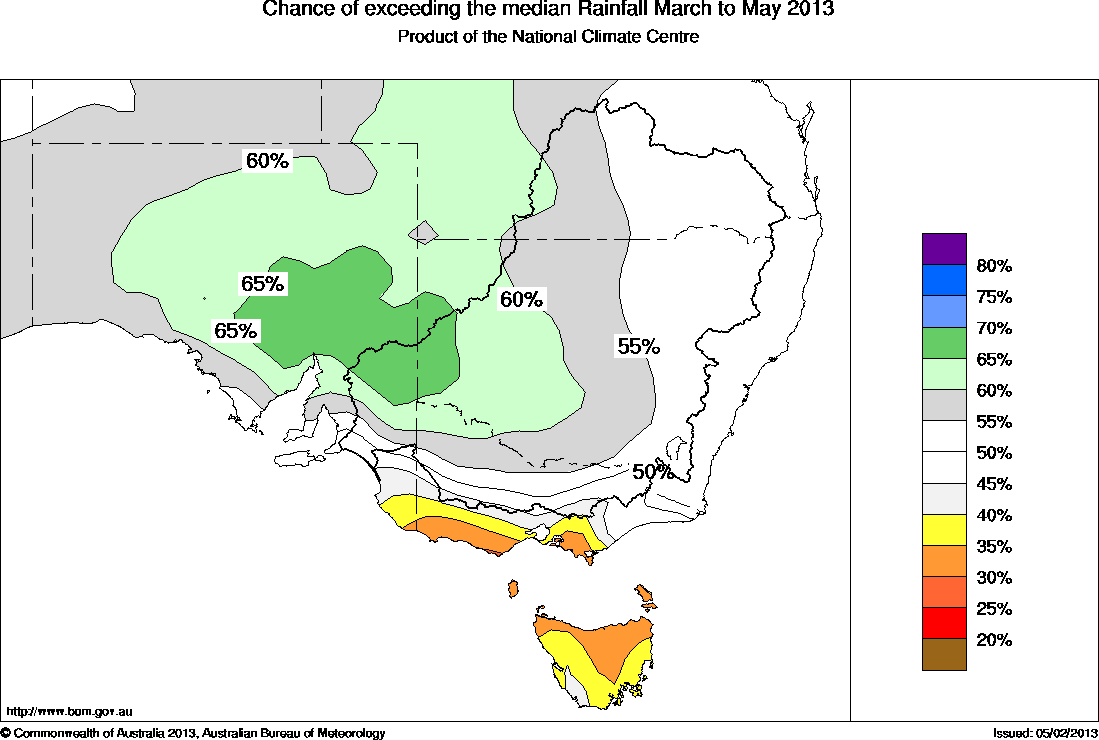 Southeastern Aust Seasonal Rainfall Outlook: probabilities for Autumn 2013, issued 20th February 2013