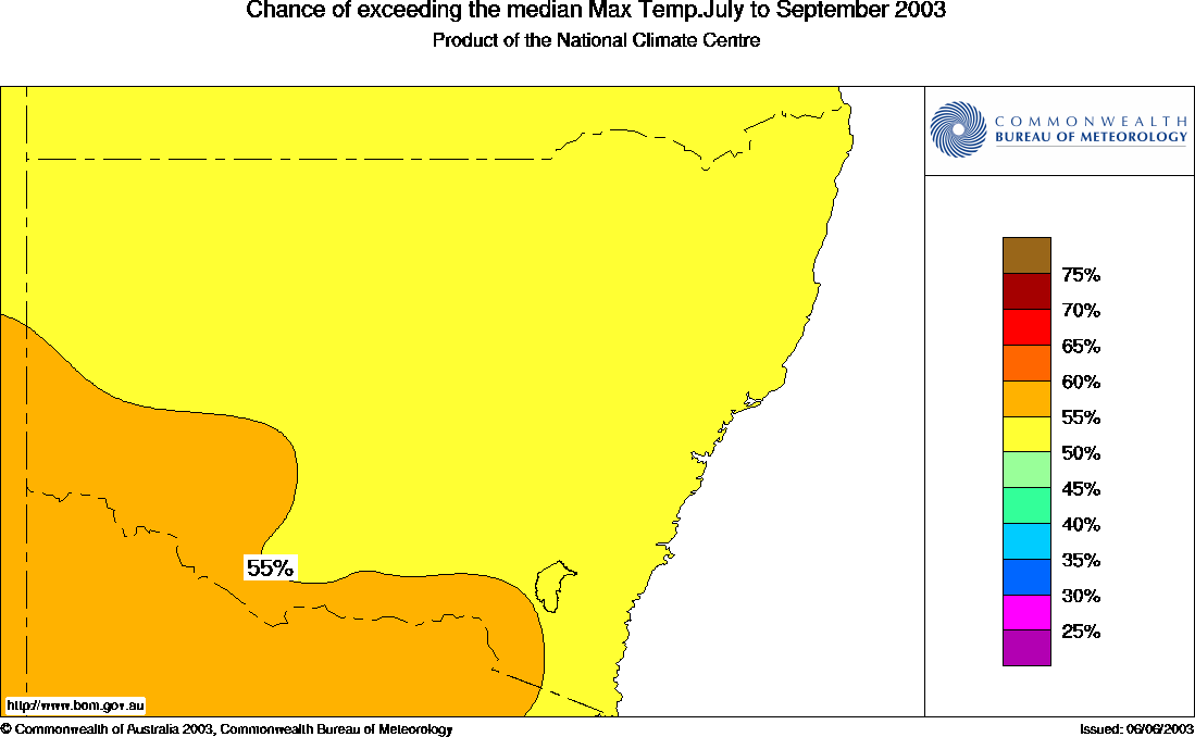 NSW, with about 5 out of 10 being cooler. The Bureau's July to