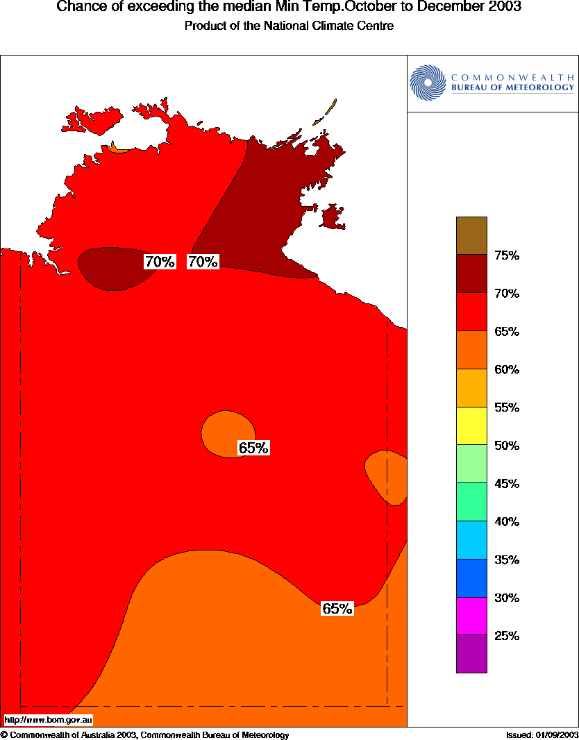Warmer than average nights are also favoured over the NT,