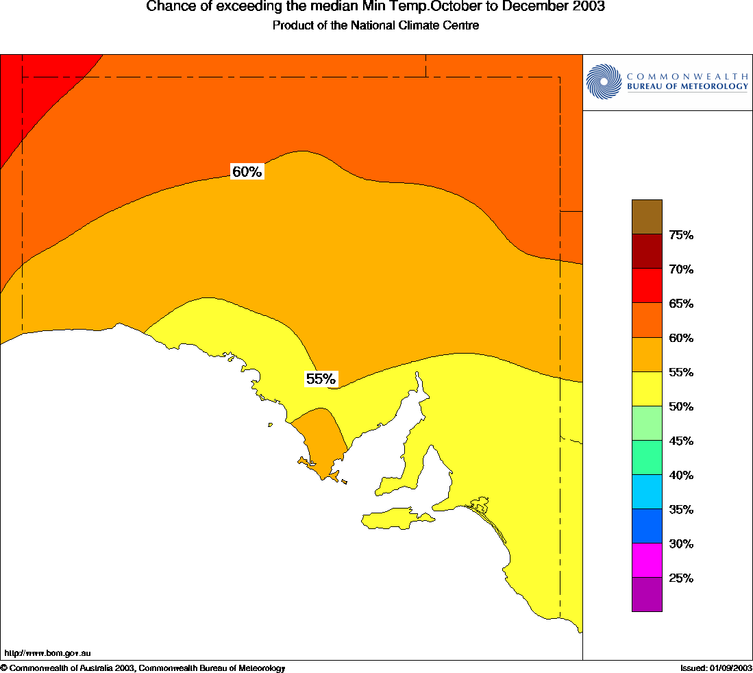 the chances of above average seasonal minimum temperatures