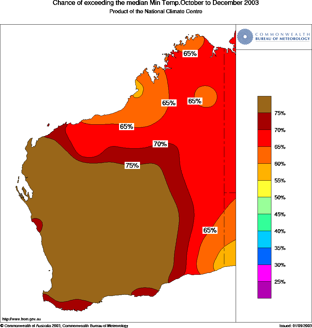 the southwest half of WA, with about 3 out of 10 being cooler.
