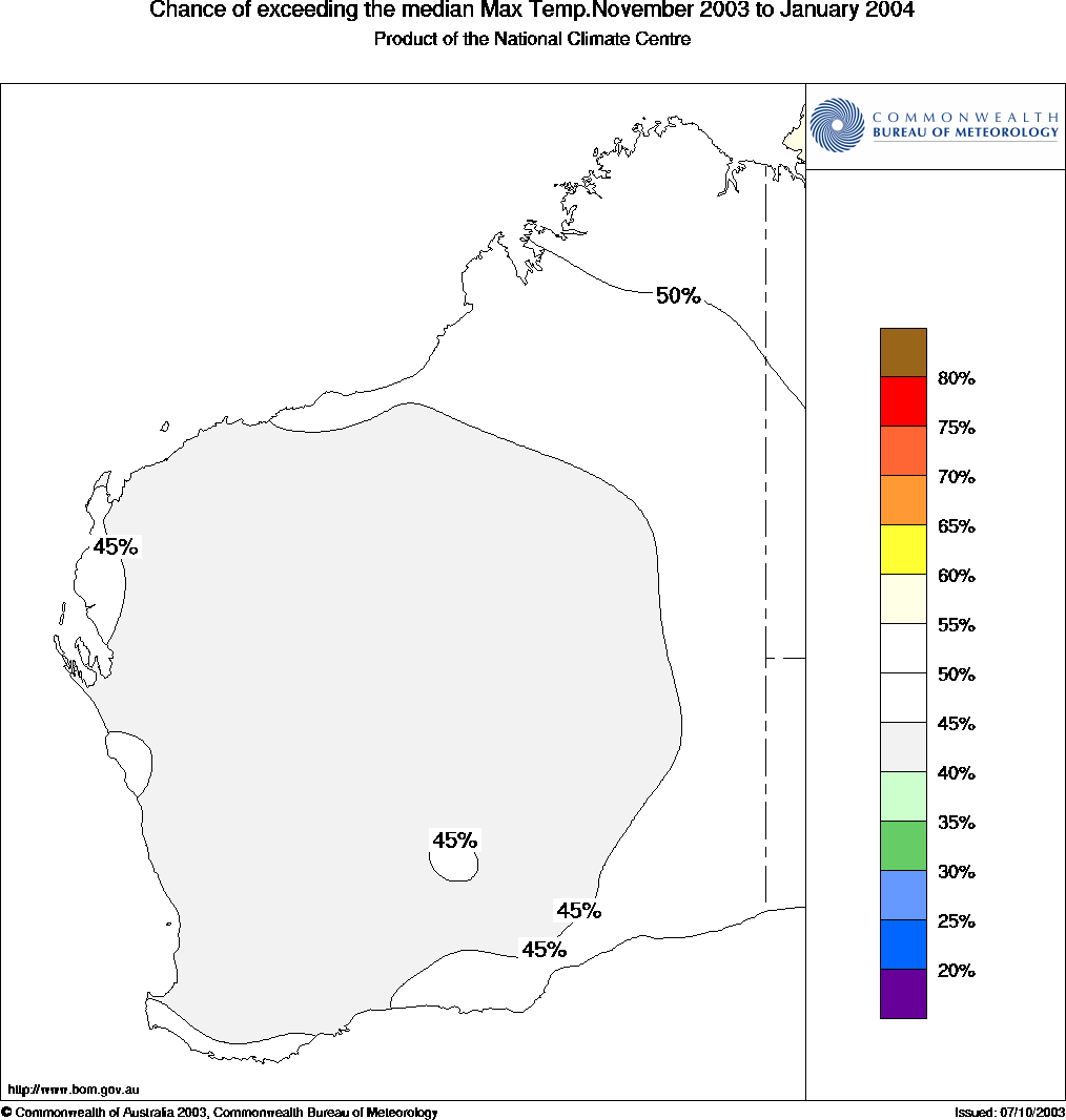 warmer than average throughout WA, with about 5 out of 10 being cooler.