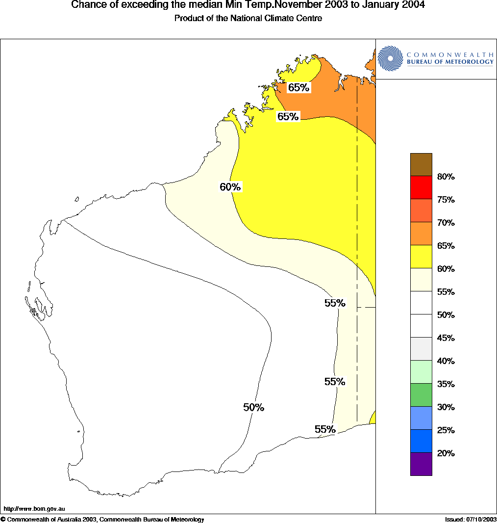 Warmer than average nights are favoured in the far north of WA with