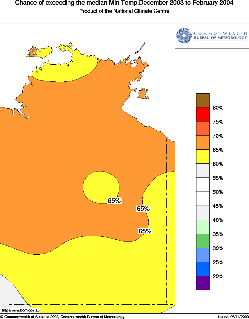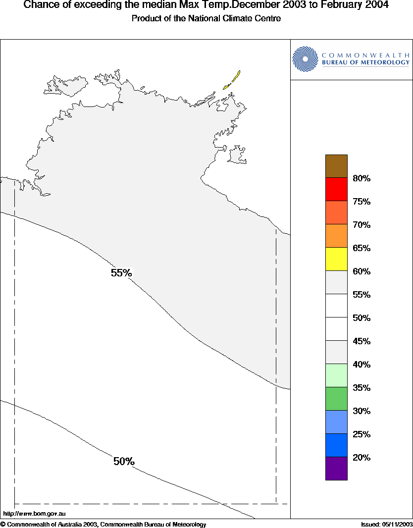 warmer than average across the NT, with about 5 out of 10 being cooler.