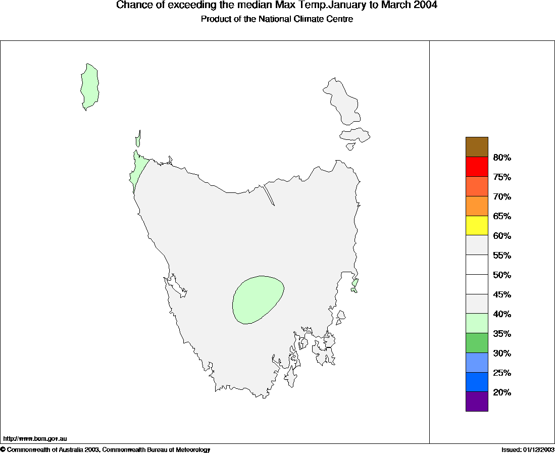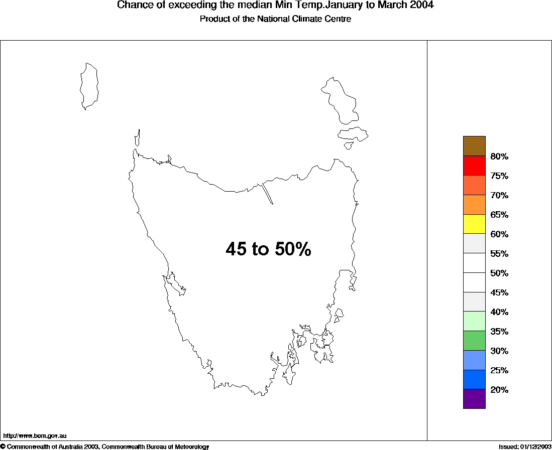 is neutral with the chances ranging between 45 and 50% across Tasmania.