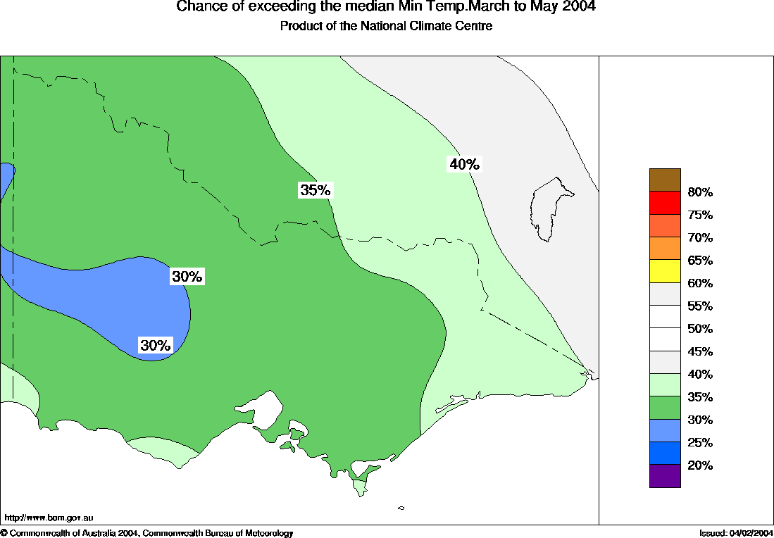 BELOW average seasonal temperatures have a 65 to 75% chance of occurring.