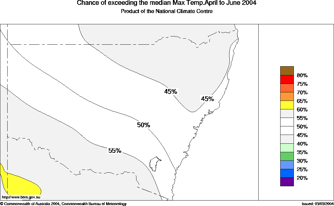 The chances of above average seasonal minimum temperatures vary