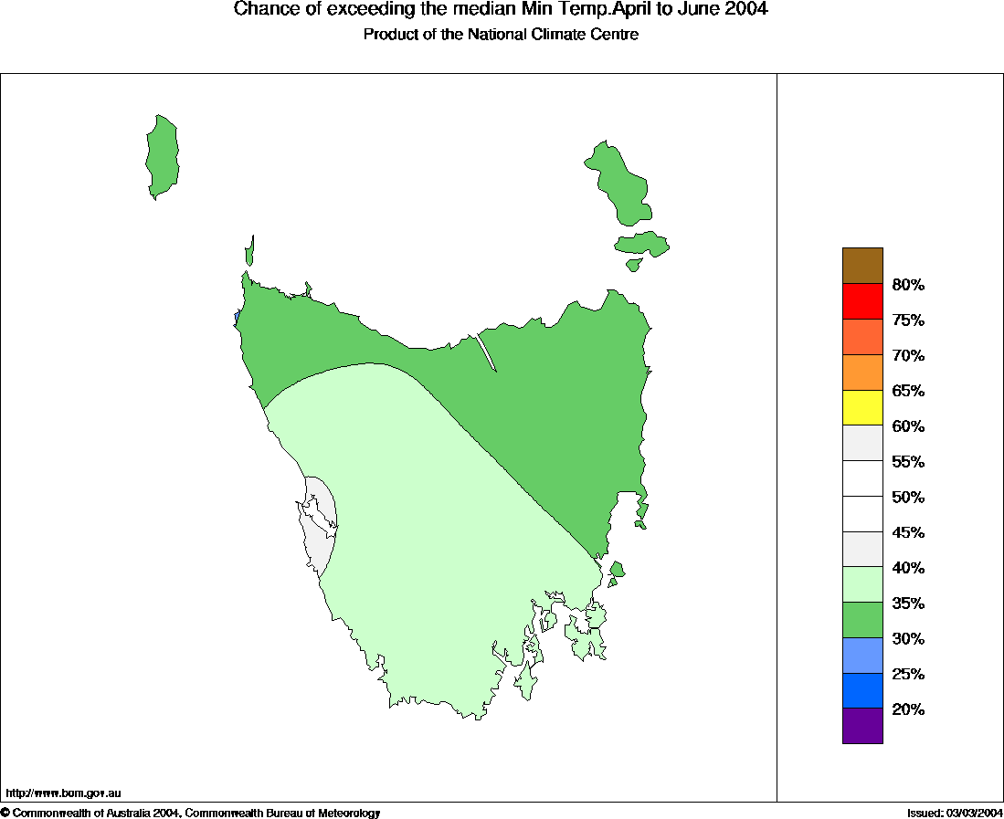 of 10 of occurring across Tasmania, with the current climate patterns.