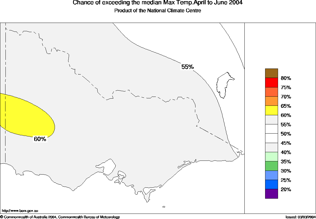 seasonal daytime temperatures are between 55 and 60% across Victoria