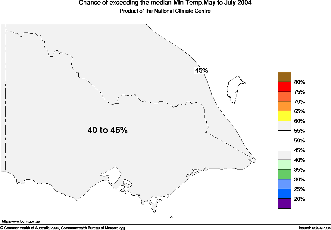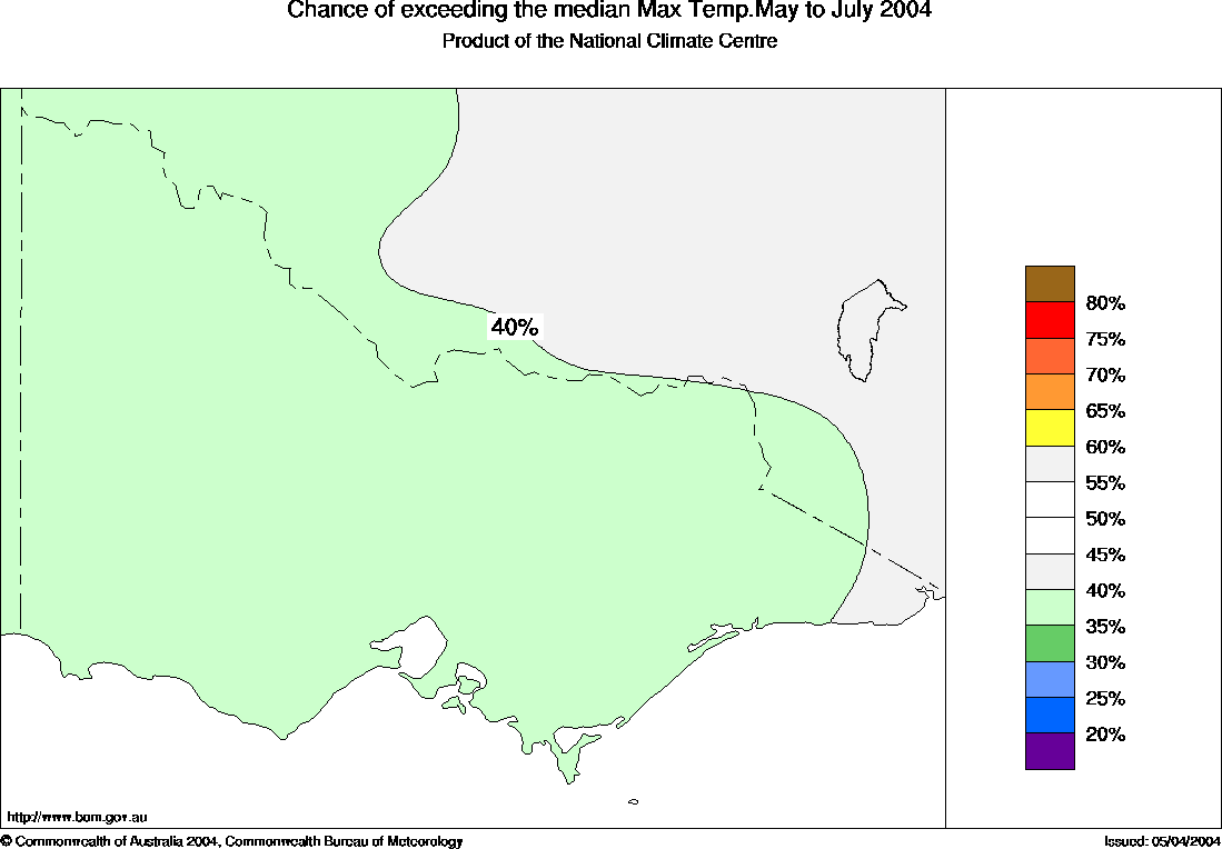 seasonal daytime temperatures are between 35 and 40% over Victoria