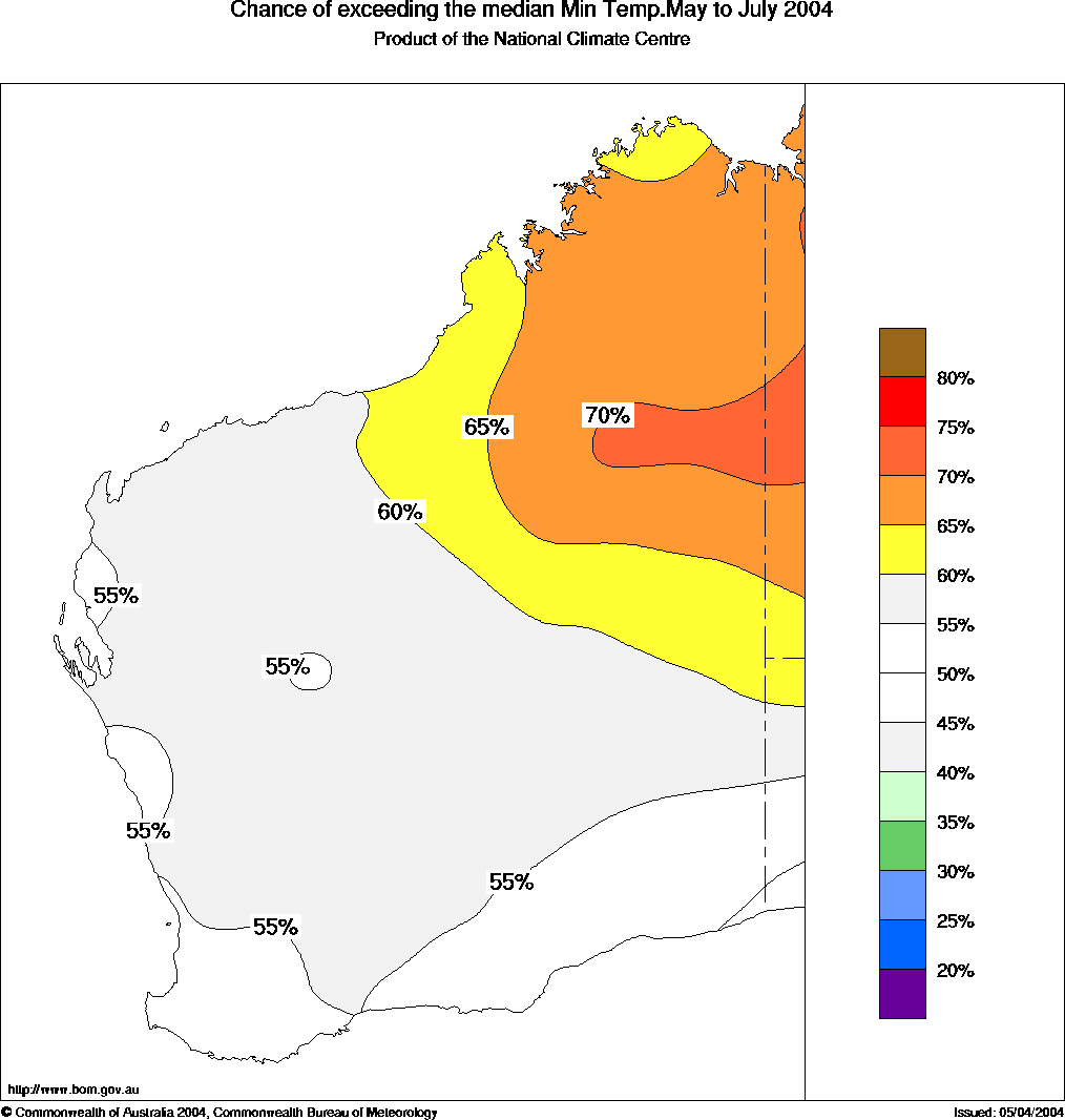ranging from to 60 to about 70%. Across the rest of WA, the chances