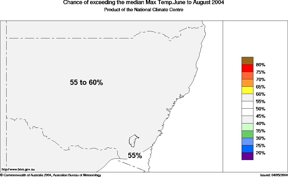 seasonal daytime temperatures are around 55% over NSW (see map).