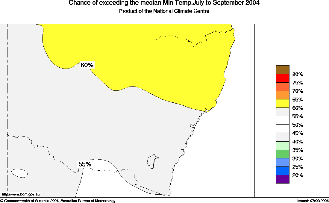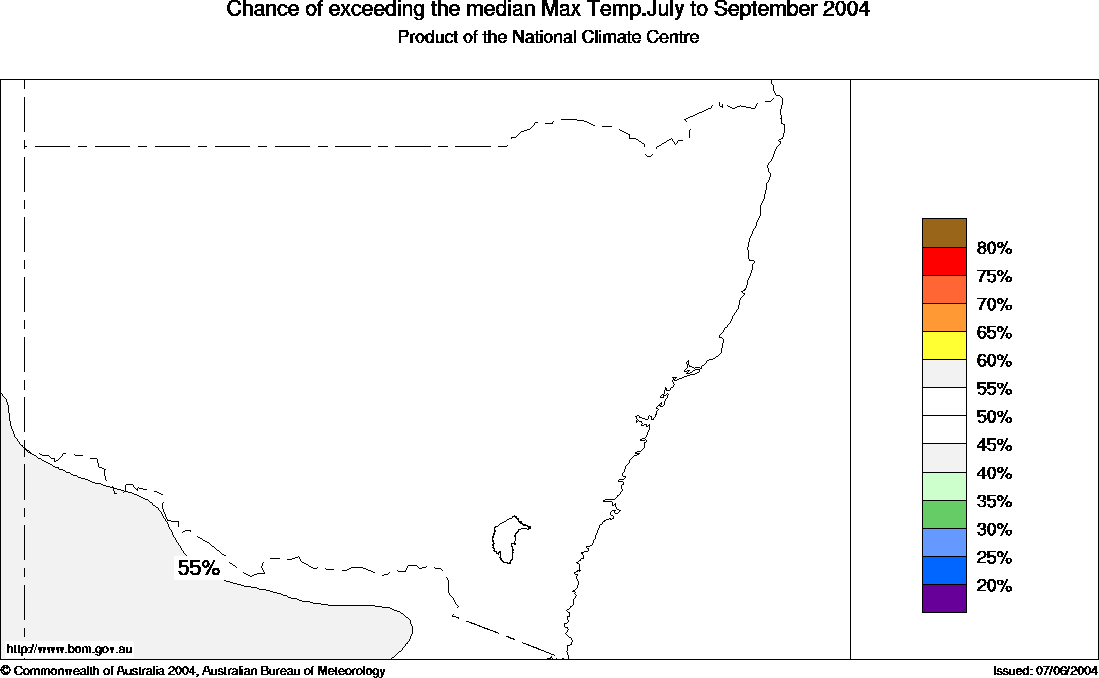 seasonal daytime temperatures are between 50 and 55% across NSW