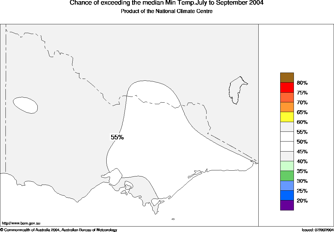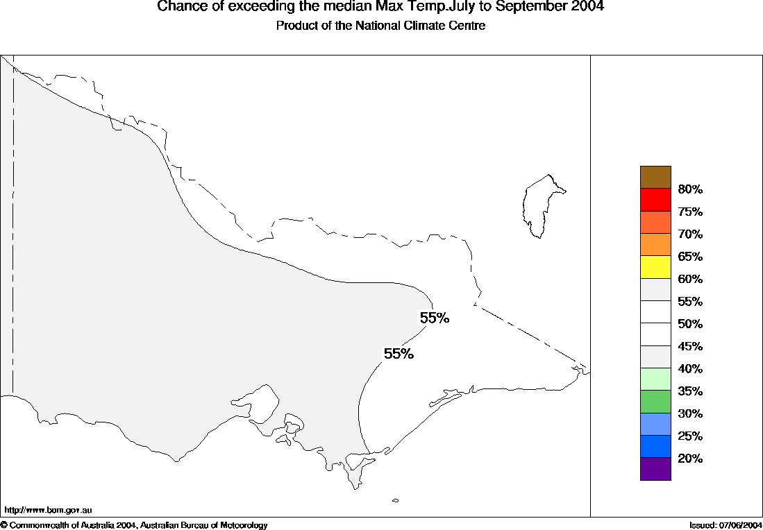 seasonal daytime temperatures are near 55% across much of Victoria,