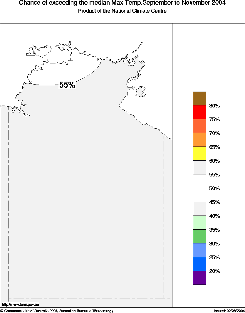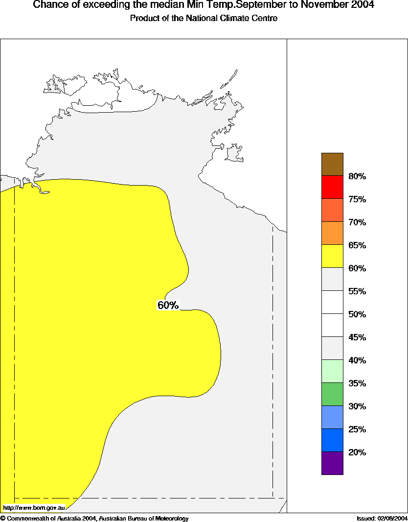 chances of above average seasonal minimum temperatures are mostly between 55 and 60%.