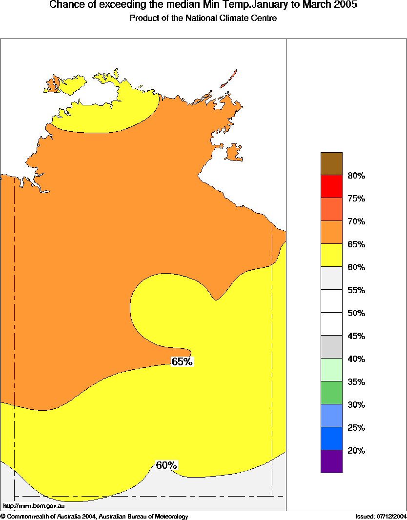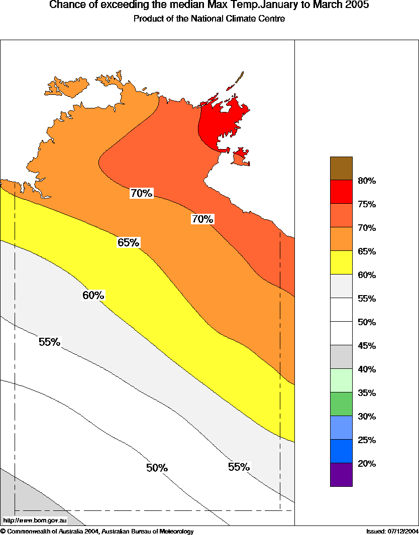Territory. The chances peak in the 75 to 80% range in eastern Arnhem Land (see map).