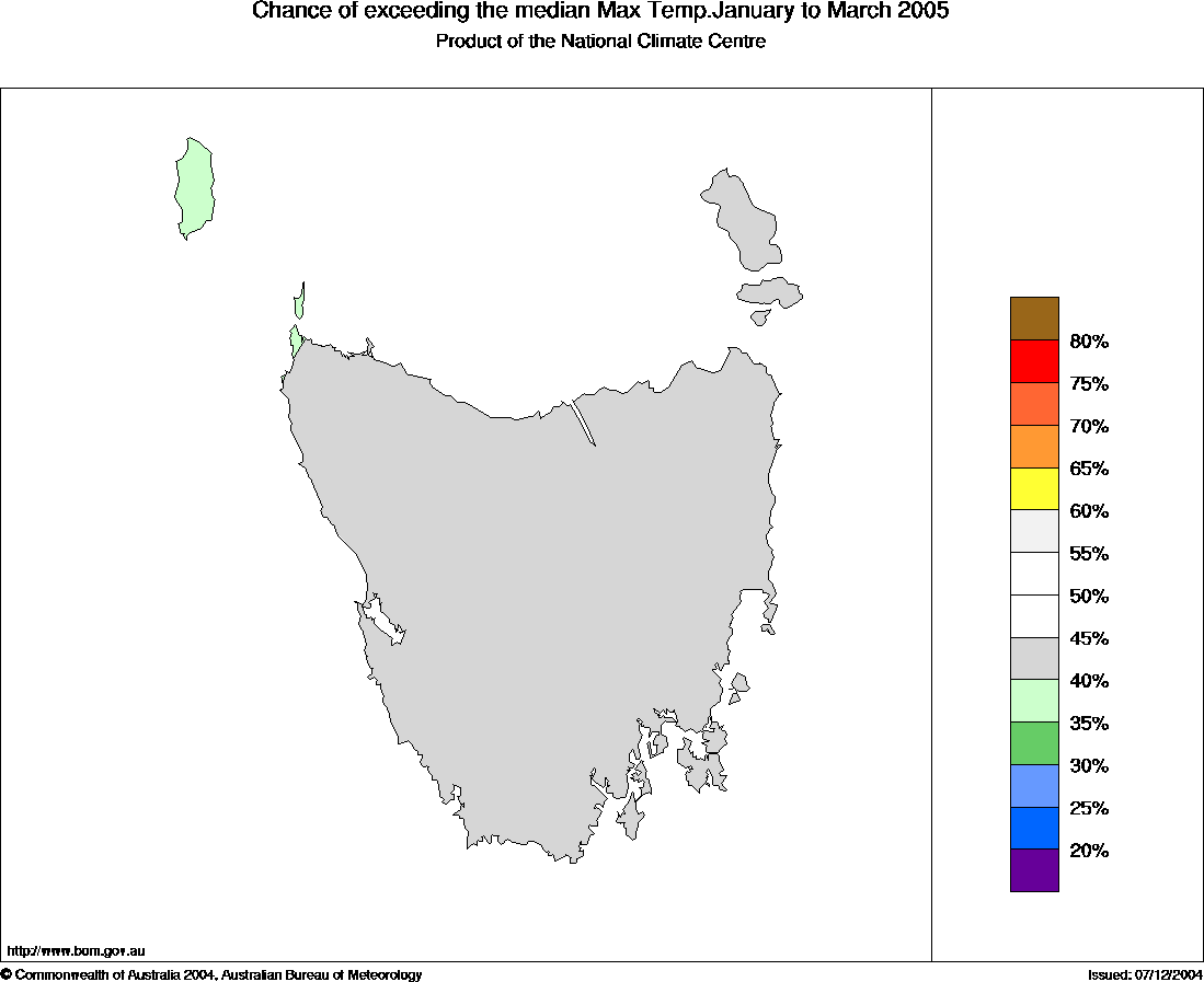 50% across Tasmania. So there are no strong shifts in the odds towards either warmer