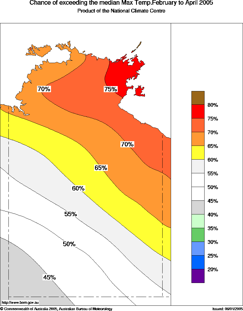 The chances peak in the 75 to 80% range in eastern Arnhem Land (see map). So in years with