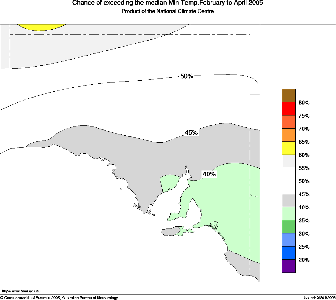 districts, and parts of the eastern Eyre Peninsula. The chances of above normal overnight