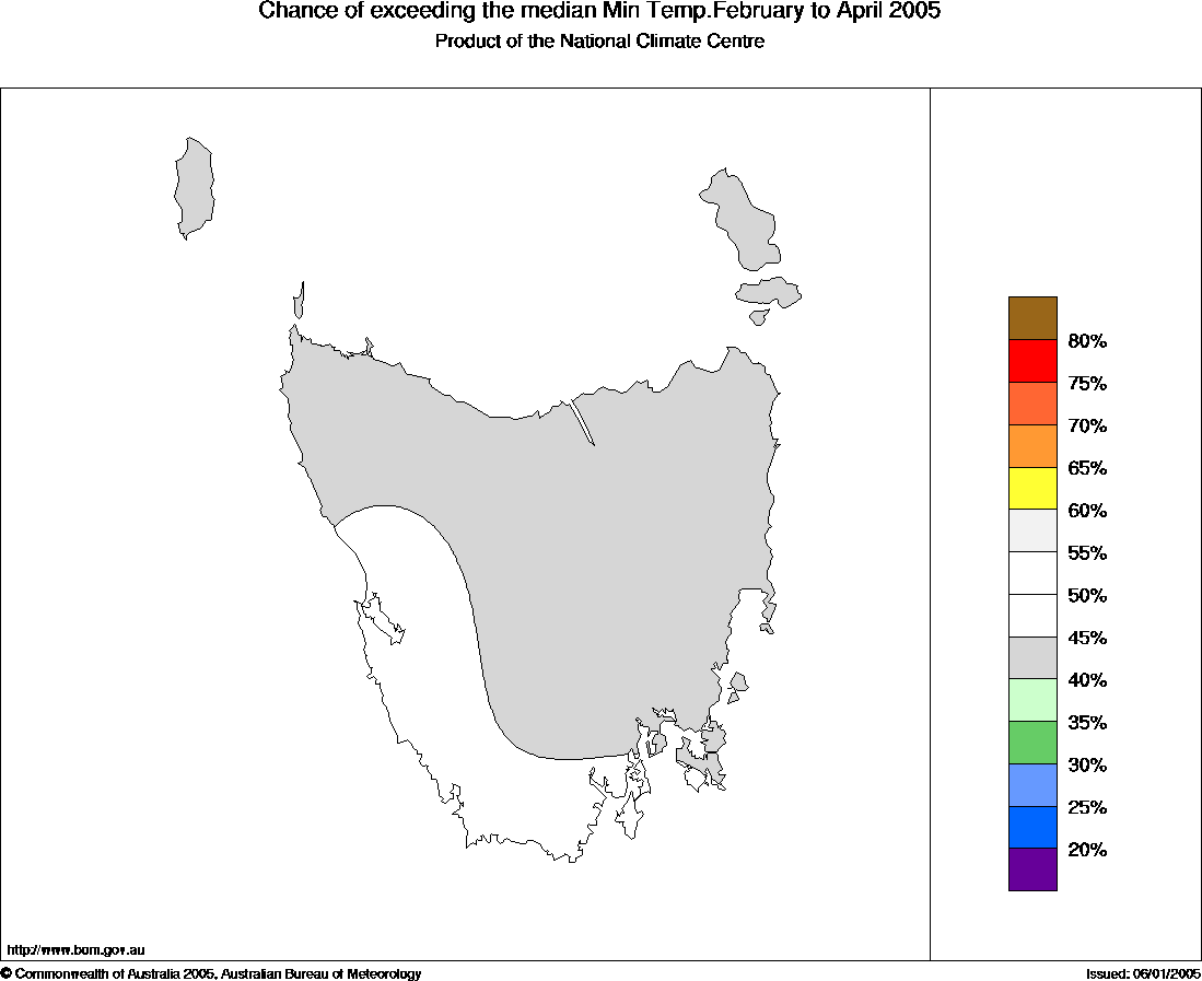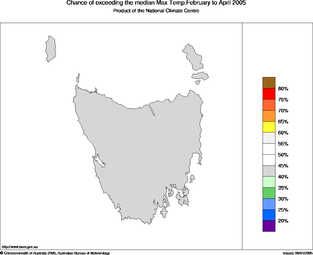 For the February to April period in Tasmania, the chances of above average seasonal daytime