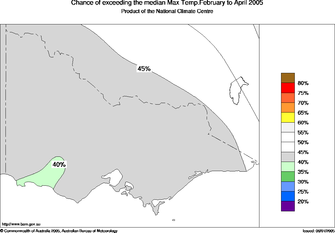 For the February to April period in Victoria, the chances of above average seasonal daytime