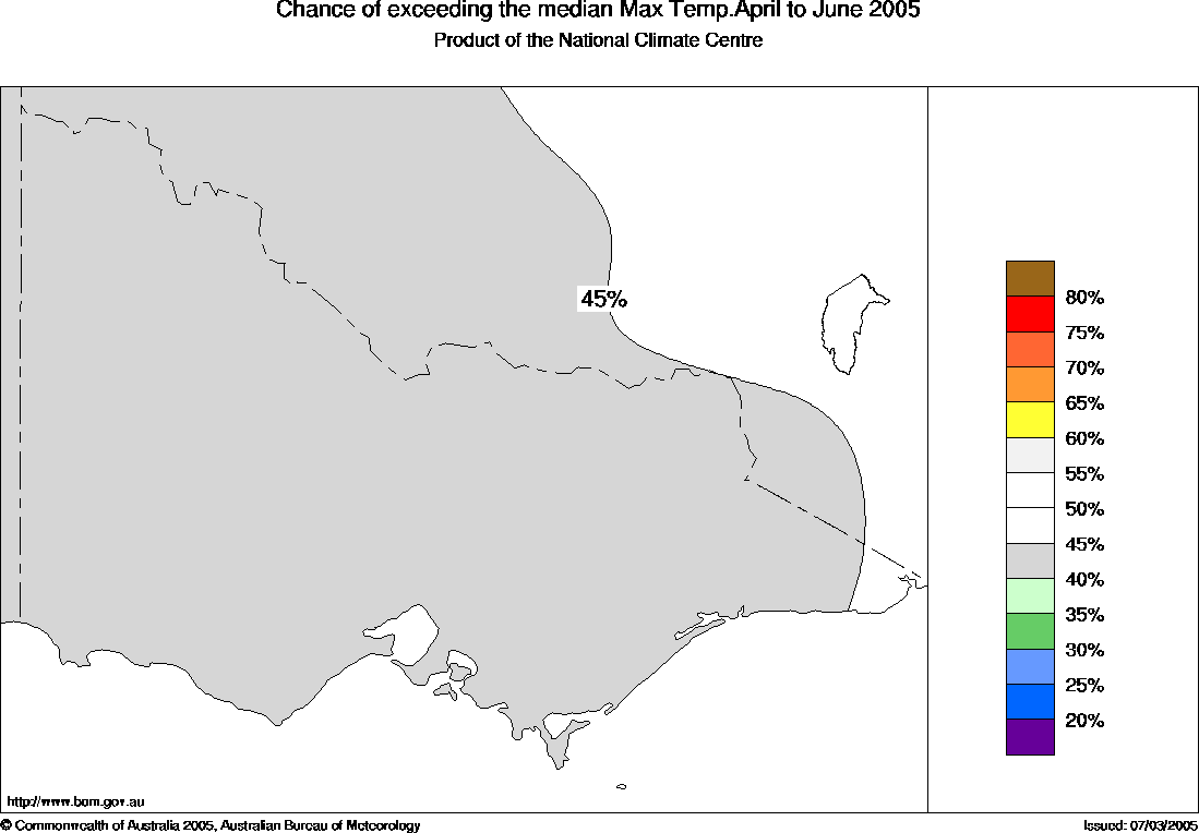 Vic Seasonal Temperature Outlook: probabilities for April to June 2005,