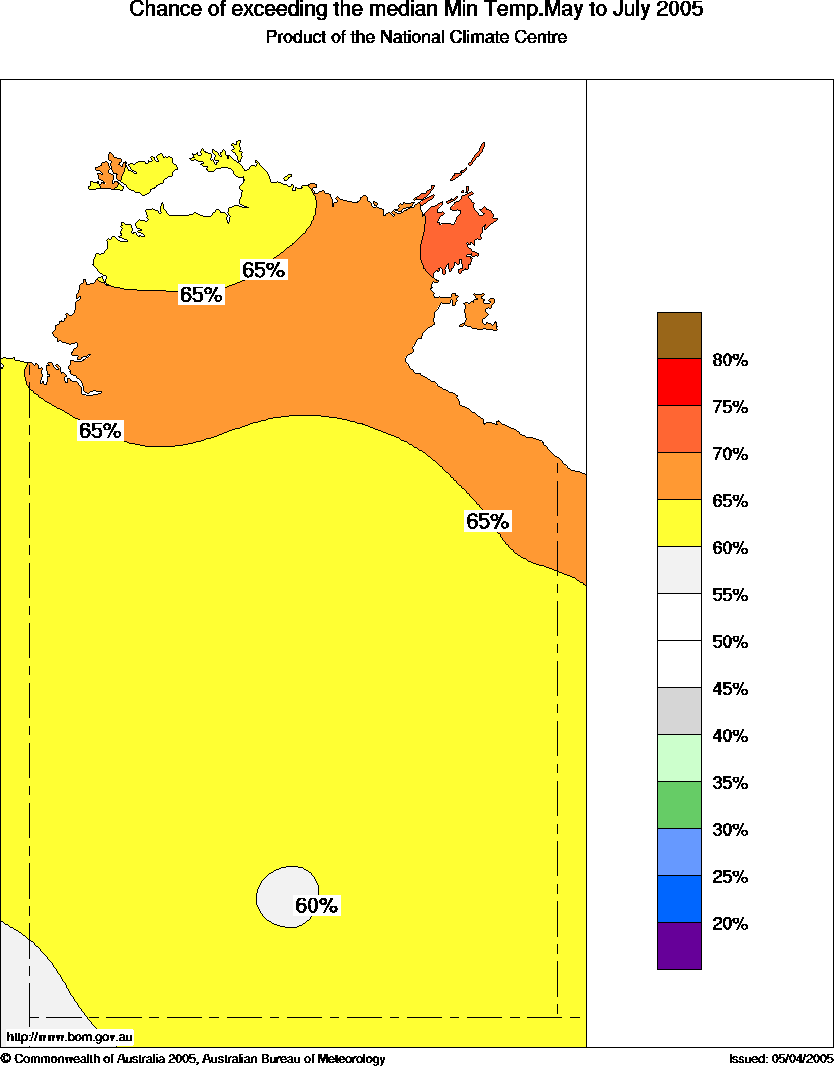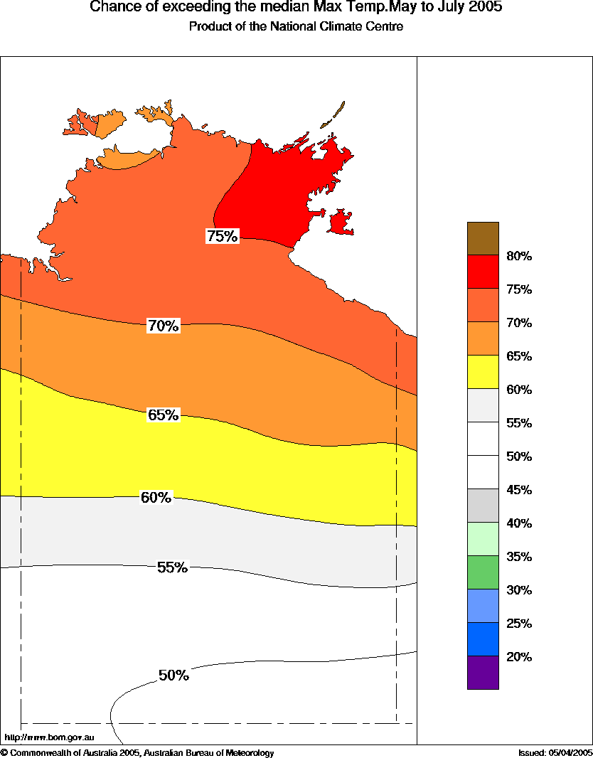 NT Seasonal Temperature Outlook: probabilities for May to July 2005,