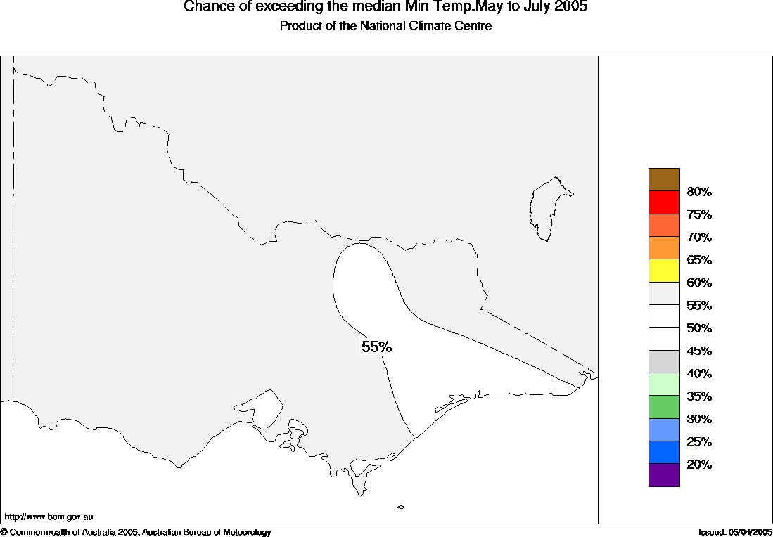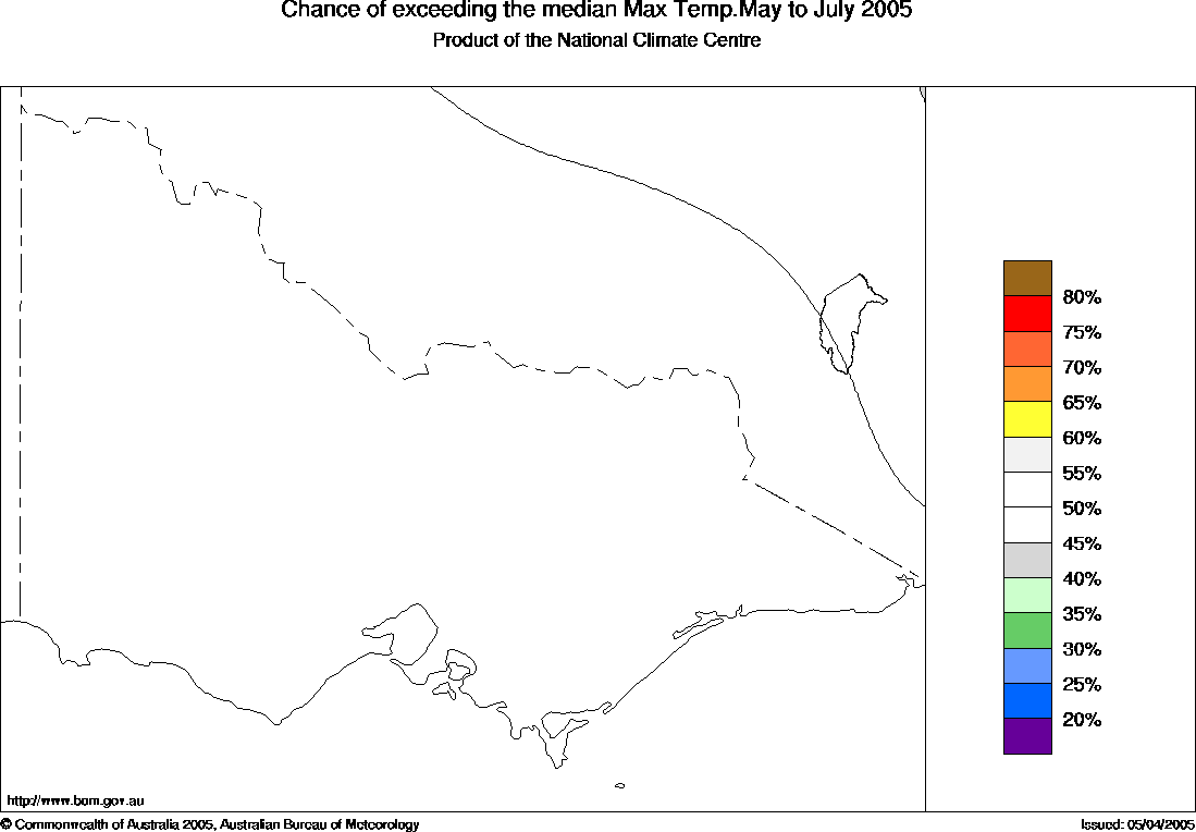 Vic Seasonal Temperature Outlook: probabilities for May to July 2005,