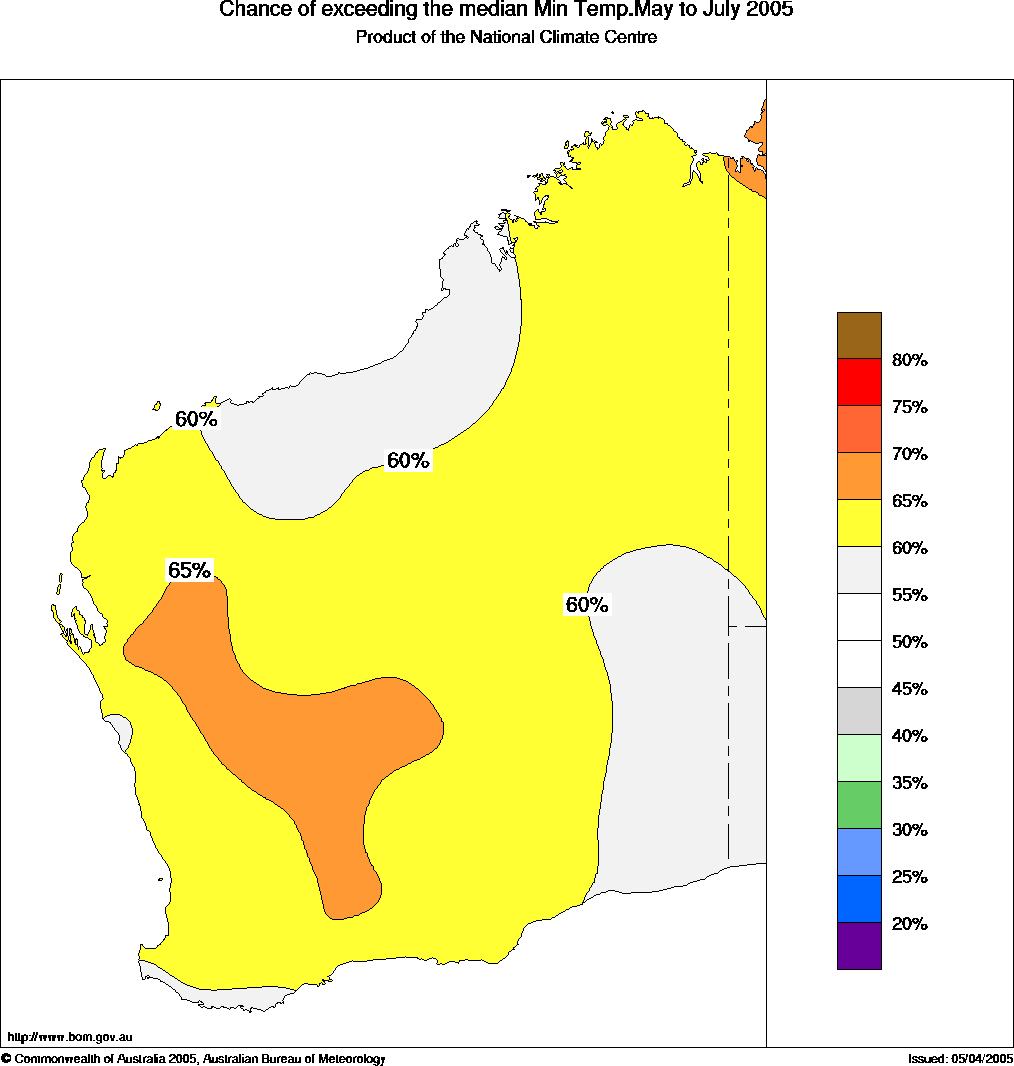minimum temperatures for the May to July quarter over much of WA.