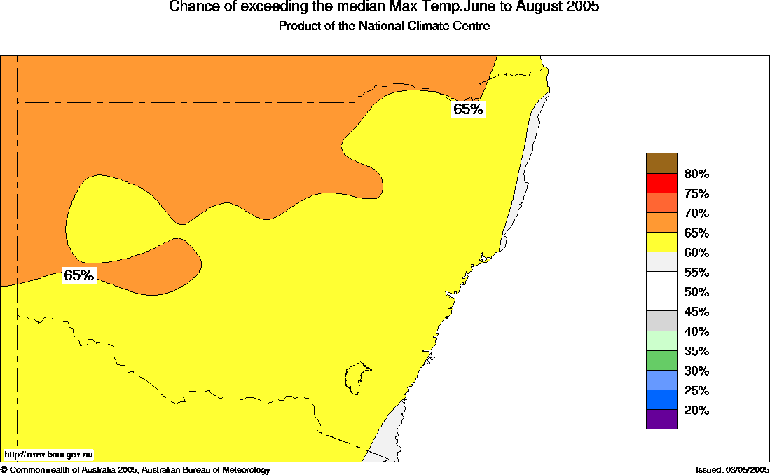 The outlook pattern for maximum temperatures in NSW is mainly as a result of
