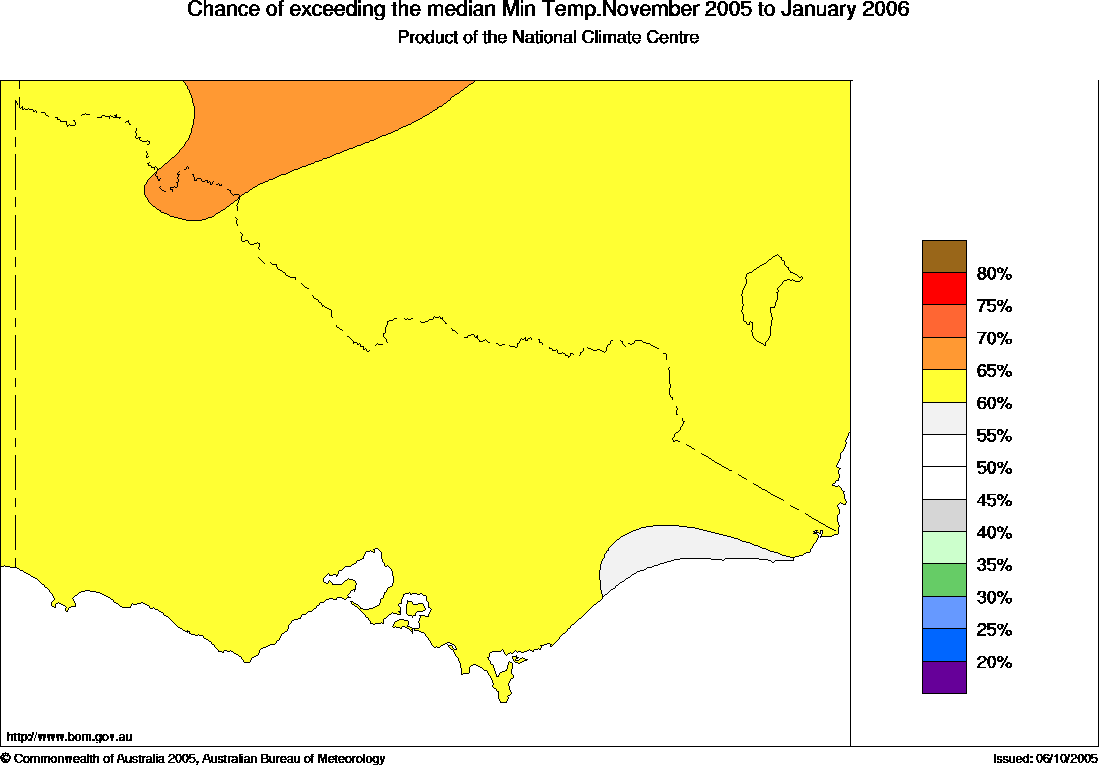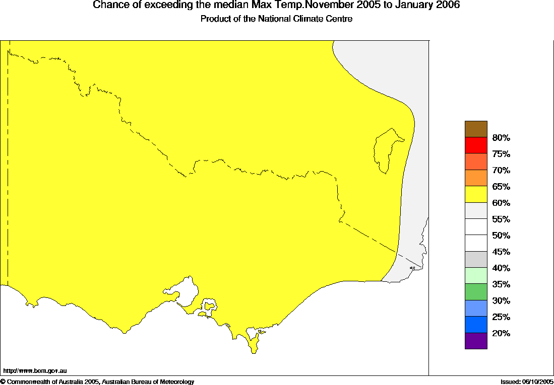 temperatures will be higher than the median is between 60 and 65% over Victoria, (see map).