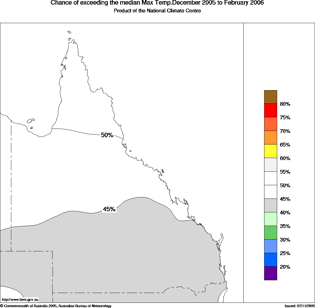 The chances of exceeding the summer (Dec-Feb) average maximum temperature are close to
