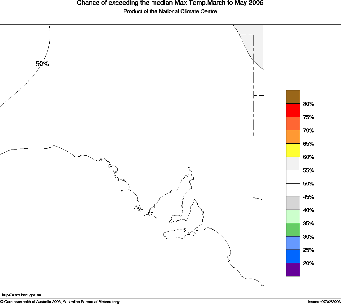 More information on this outlook is available from 9.00am to 5.00pm (CST) Monday to Friday by contacting the Climate and Consultancy section in the Bureau's Adelaide Office: (08) 8366 2664. | ||||