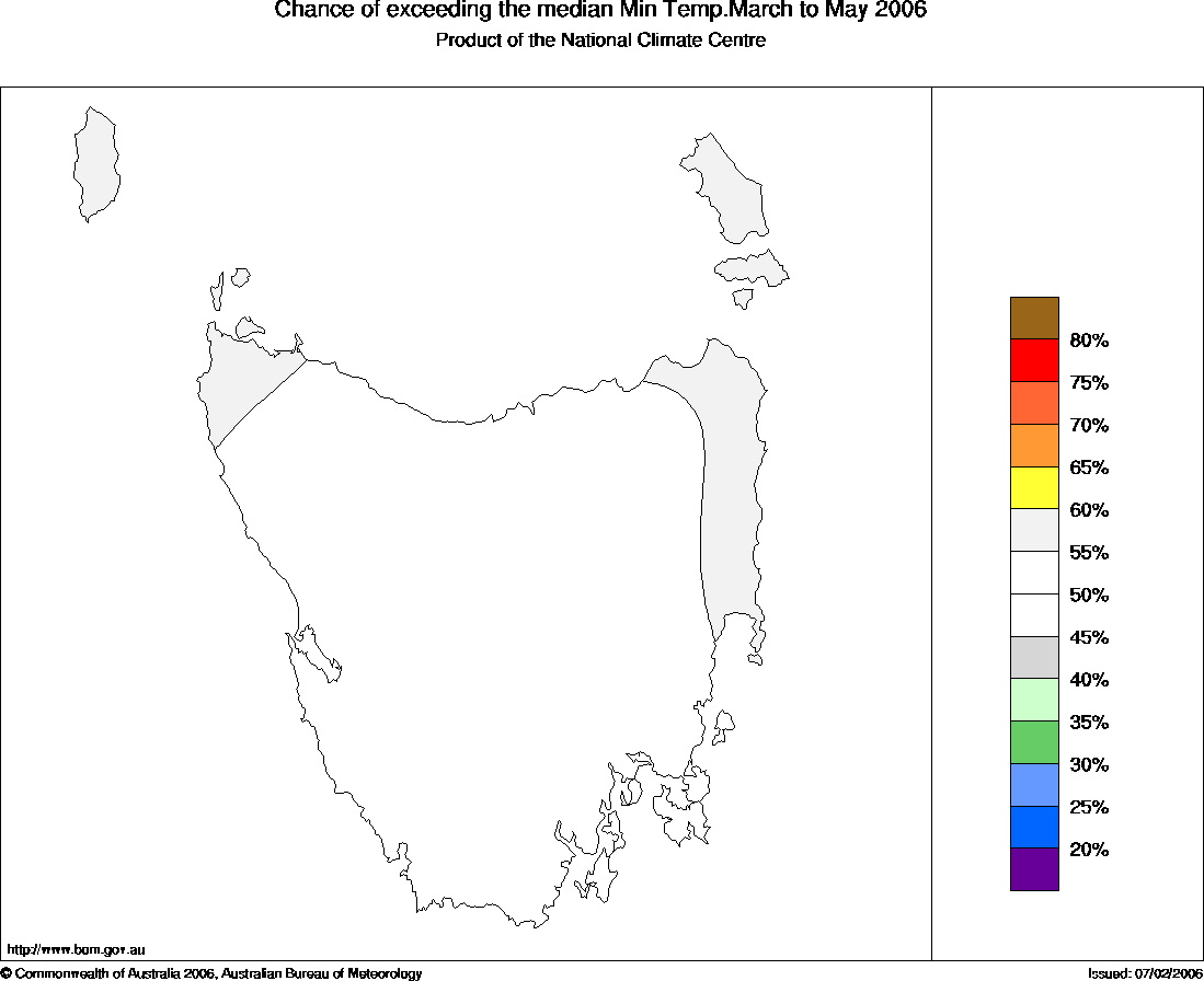 50 and 55% across Tasmania (see map). This equates to an expectation of warmer