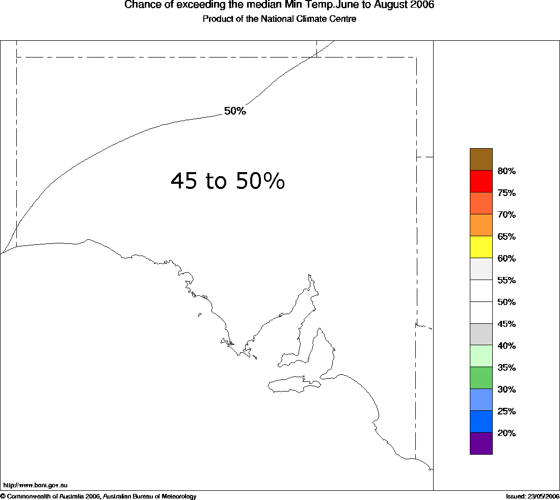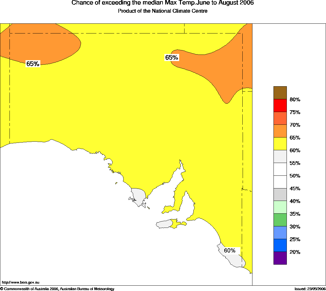 More information on this outlook is available from 9.00am to 5.00pm (CST) Monday to Friday by contacting the Climate and Consultancy section in the Bureau's Adelaide Office: (08) 8366 2664. | ||||