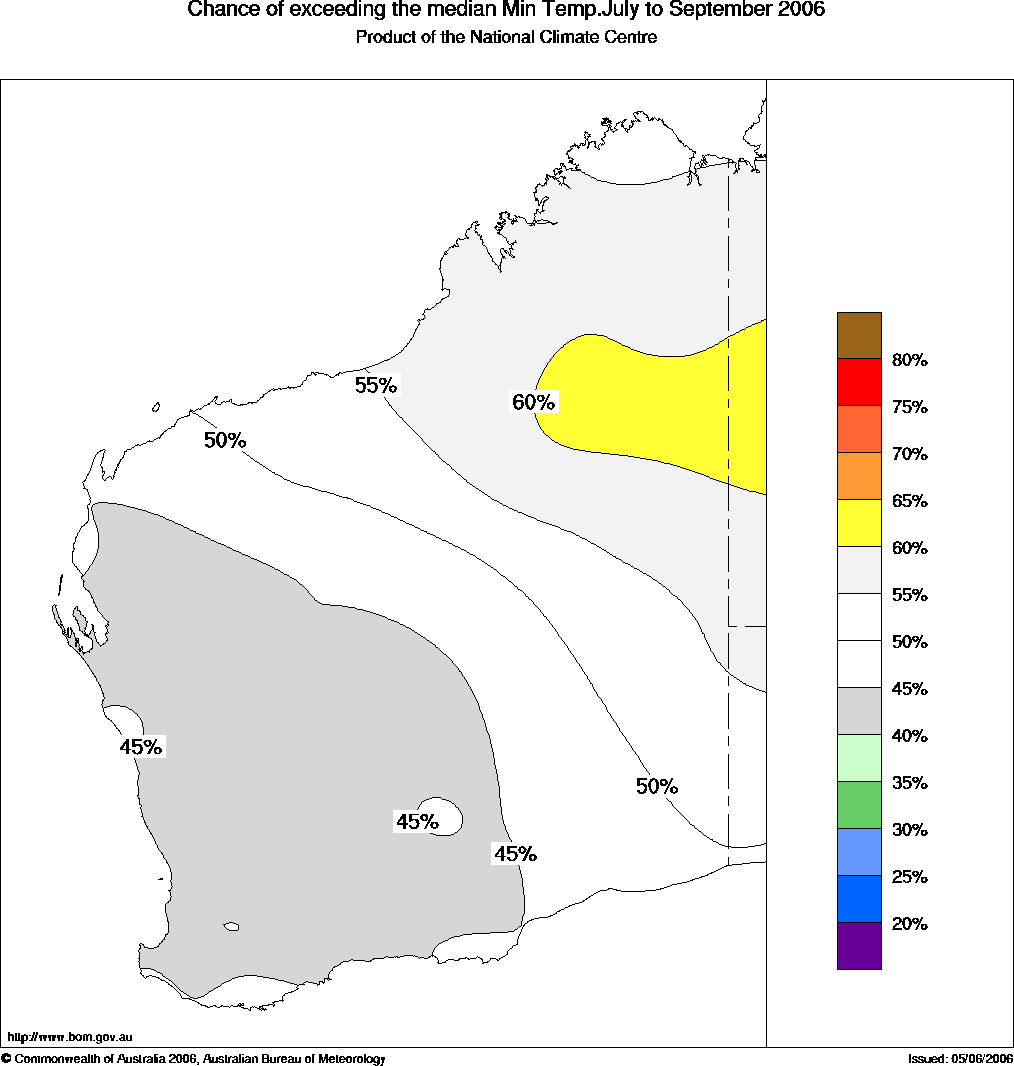 More information on this outlook is available from 9.00am to 5.00pm (WST) Monday to Friday by contacting the Climate and Consultancy section in the Bureau's Perth Office: (08) 9263 2222. | ||||