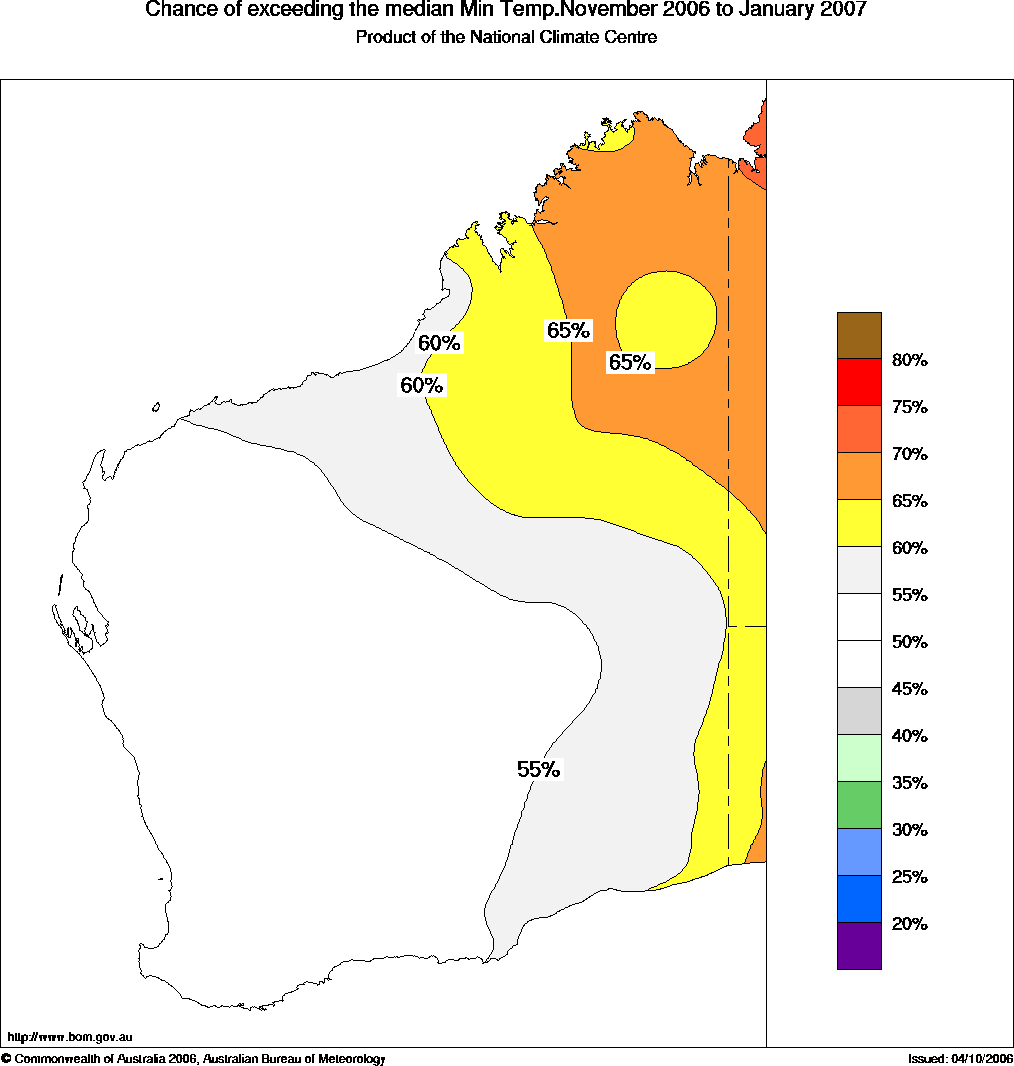 More information on this outlook is available from 9.00am to 5.00pm (WST) Monday to Friday by contacting the Climate and Consultancy section in the Bureau's Perth Office: (08) 9263 2222. | ||||