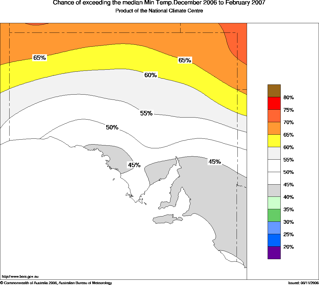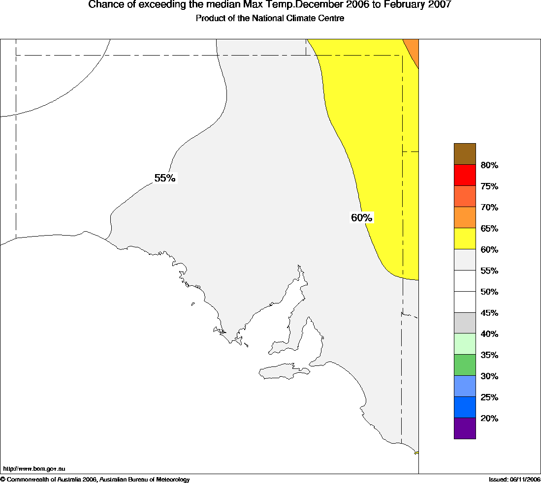 More information on this outlook is available from 9.00am to 5.00pm (CST) Monday to Friday by contacting the Climate and Consultancy section in the Bureau's Adelaide Office: (08) 8366 2664. | ||||