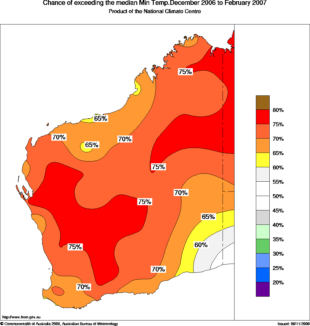 More information on this outlook is available from 9.00am to 5.00pm (WST) Monday to Friday by contacting the Climate and Consultancy section in the Bureau's Perth Office: (08) 9263 2222. | ||||