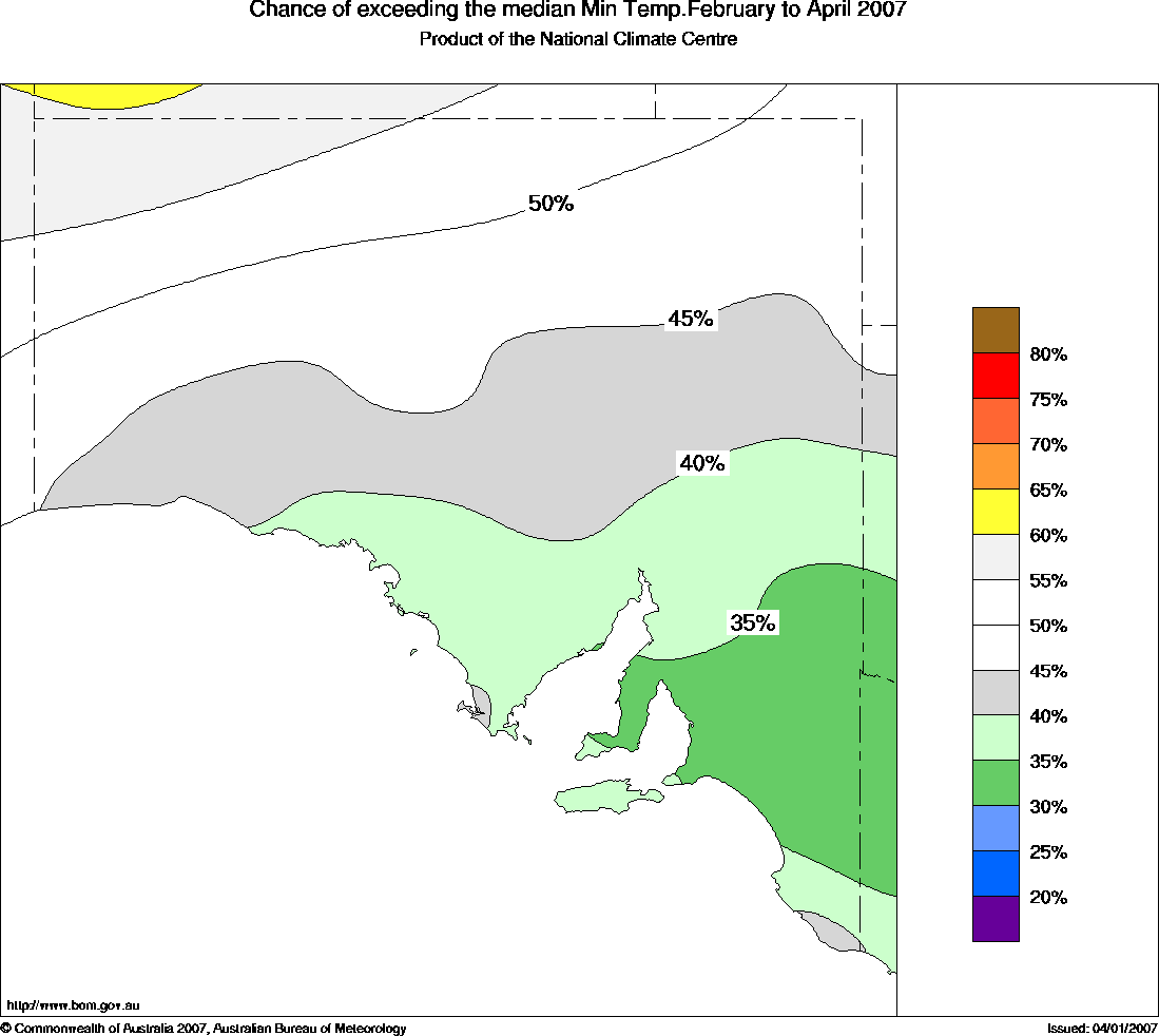 More information on this outlook is available from 9.00am to 5.00pm (CST) Monday to Friday by contacting the Climate and Consultancy section in the Bureau's Adelaide Office: (08) 8366 2664. | ||||