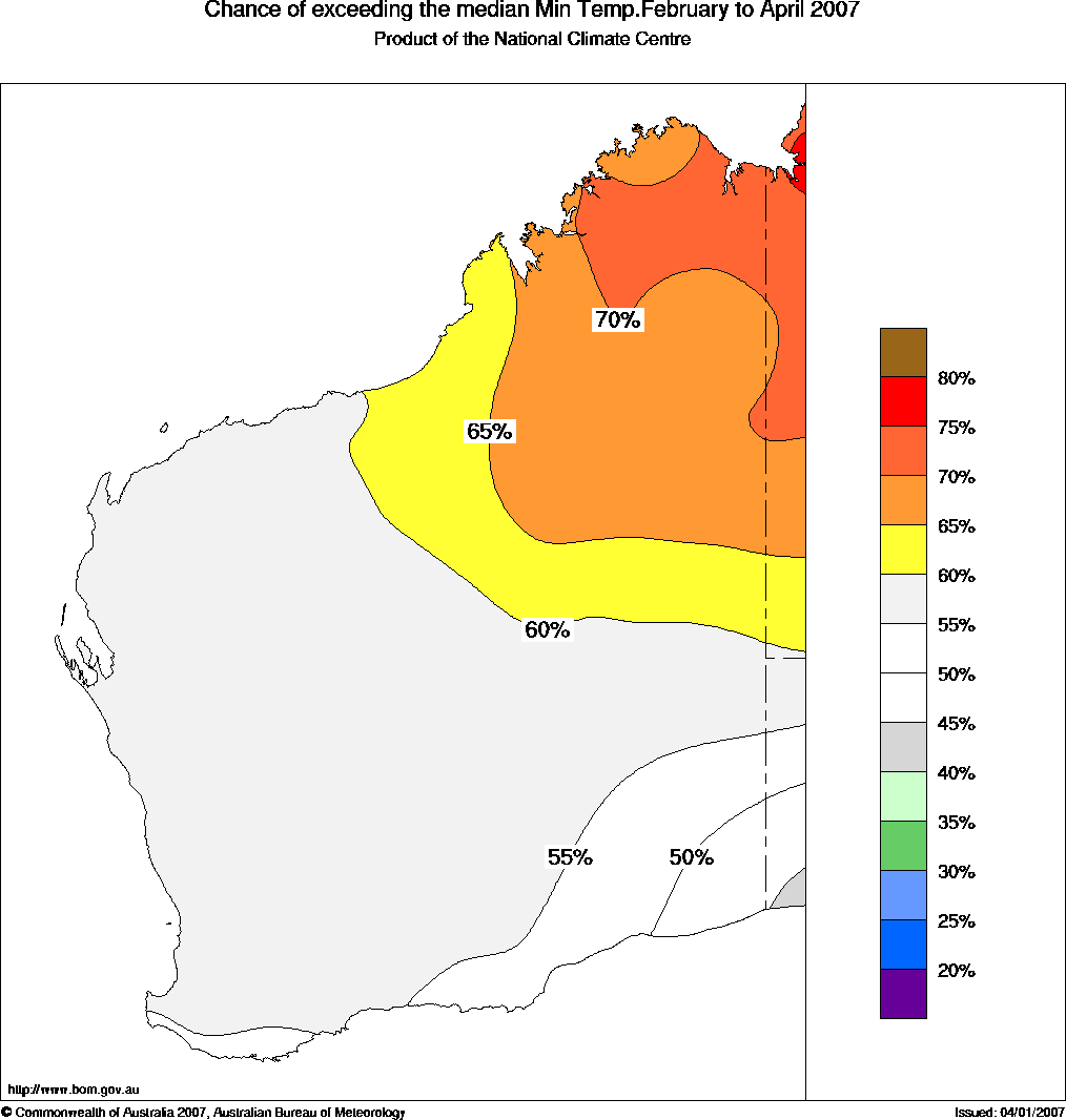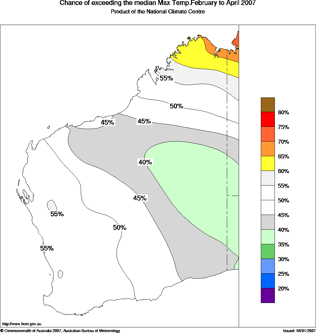 More information on this outlook is available from 9.00am to 5.00pm (WST) Monday to Friday by contacting the Climate and Consultancy section in the Bureau's Perth Office: (08) 9263 2222. | ||||