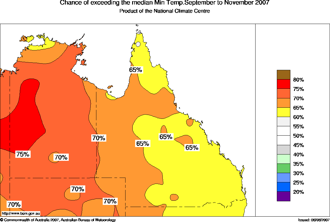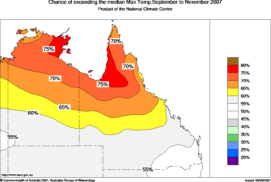 More information on this outlook is available Monday to Friday by contacting the Bureau's Climate Services sections in Queensland and the Northern Territory at the following numbers: