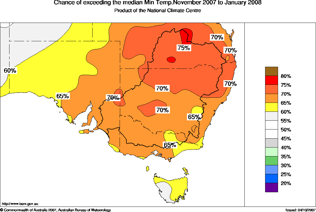 More information on this outlook is available Monday to Friday from 9.00am to 5.00pm local time by contacting the Bureau's Climate Services sections in Queensland, NSW, SA, Victoria and Tasmania at the following numbers:
