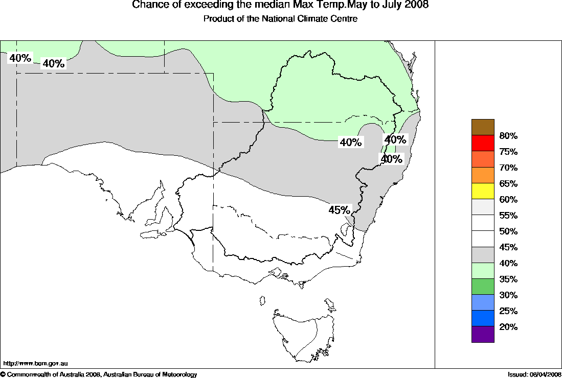 This pattern of seasonal maximum temperature odds across southeast Australia,