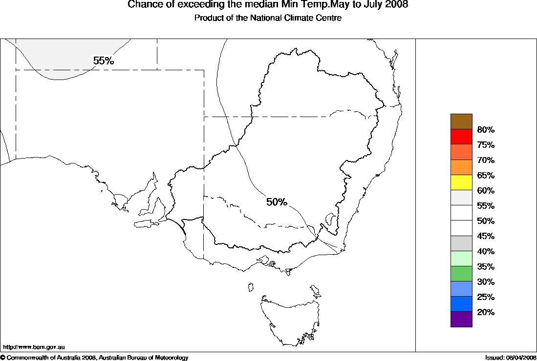 The neutral pattern of seasonal minimum temperature odds for the May to July period