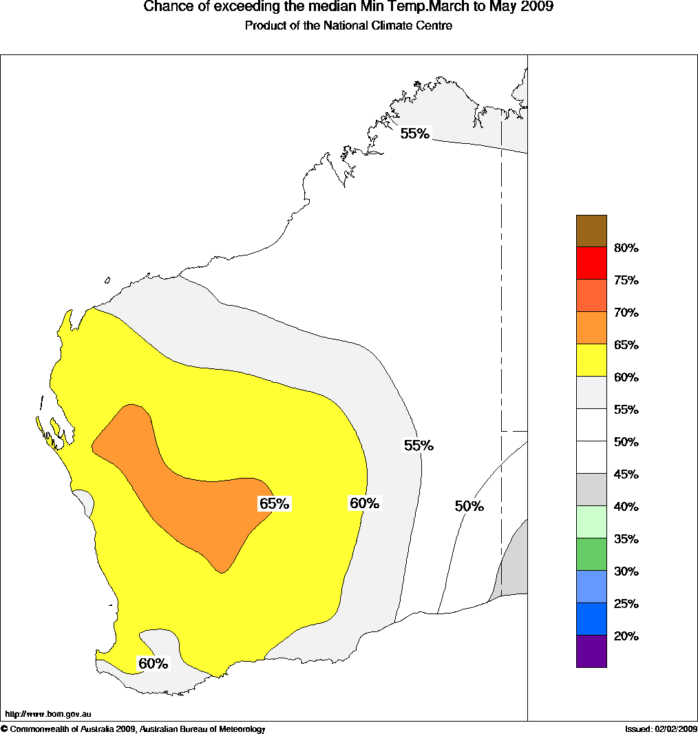 daytime temperatures are between 45 and 60%, indicating roughly equal
